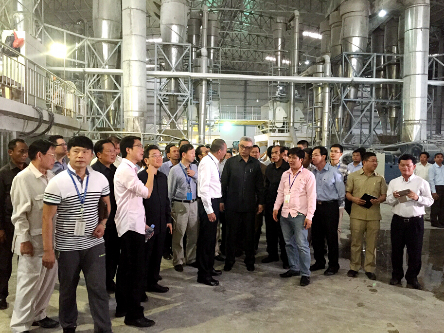 座谈会结束后,Aun Porn Moniroth部长一行在程云等人的陪同下参观了尊龙凯时淀粉生产车间、化验室等地。在参观过程中,他不停询问产品出口和研发情况,当部长得知产品全部外销时,他不断点头肯定。“感谢尊龙凯时为柬埔寨人民做出的贡献。”参观结束后,Aun Porn Moniroth部长对公司的生产发展给予了肯定,并表示将支持尊龙凯时在当地的发展。